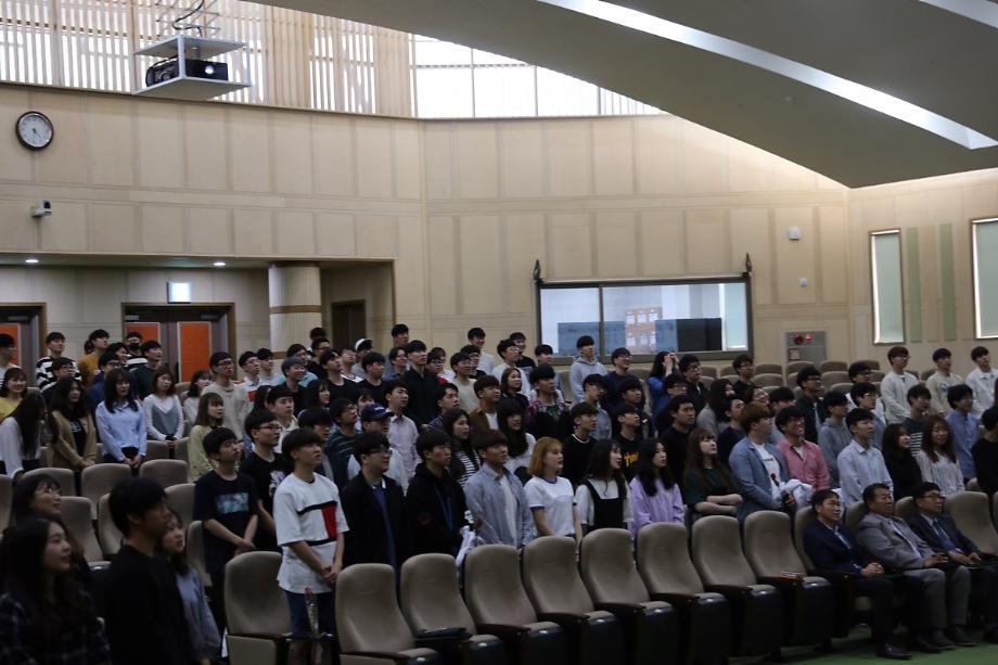 5월 15일 리버럴 아츠홀에서 의료IT공학과 명예코드 선포식 및 교수유치 장학금 수여식이 있었습니다. 자리에는 교수님들과 장학금을 기부해주신 기업인분들 그리고 전 학년 학생들이 참여한 가운데 명예코드 선포식, 장학금 수여식, 축하공연 그리고 장원석 교수님 감사장 증정식이 있었습니다. 의료IT공학과가 개설된 후 처음 열리는 큰 행사가 교수님들과 학생회 임원진 덕분에 성공리에 끝마칠 수 있었습니다. 앞으로도 계속 발전해나가는 의료IT공학과가 되길 기원합니다 ^-^ |