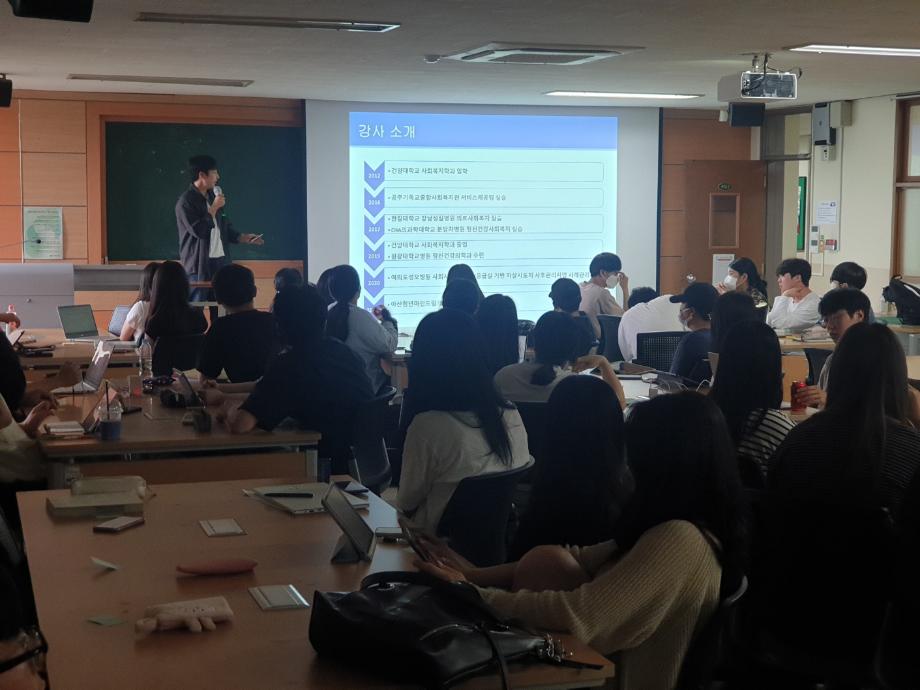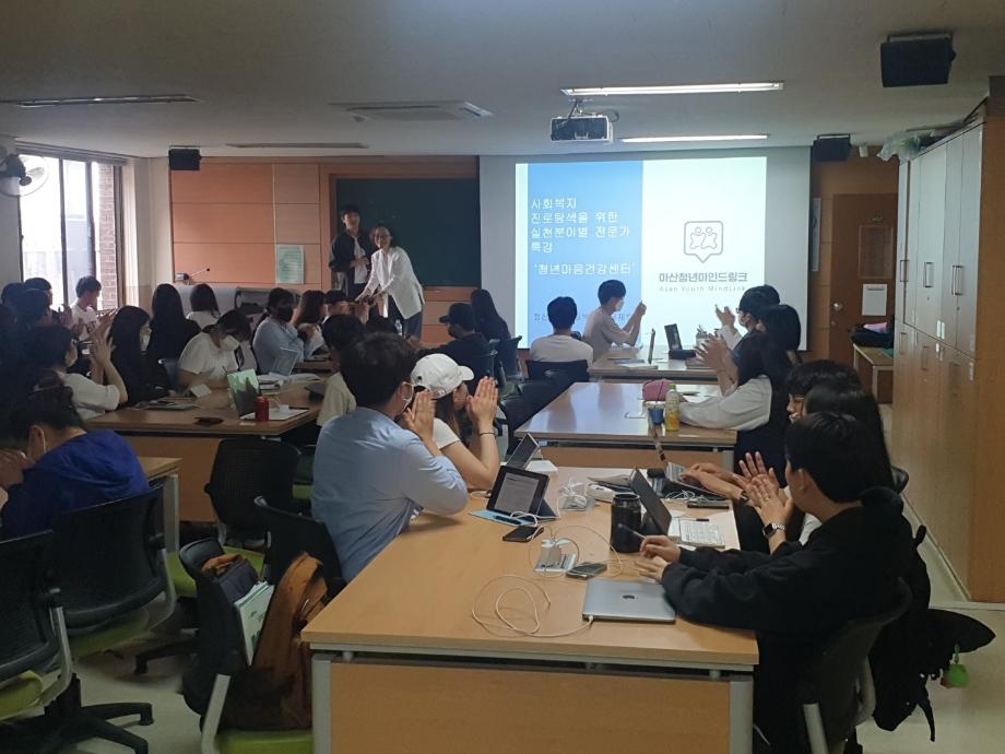 사회복지학과 1~4학년 대상으로 사회복지진로탐색 특강을 진행하였습니다. 아산 청년 마인드링크에서 근무하고 계신 건양대학교 사회복지학과 12학번 유재량 강사 님과 한국 Make A Wish 소원별 재단 경영지원 팀장으로 근무하고 계신 건양대학교 사회복지학과 11학번 홍정아 강사 님의 특강을 통해 사회복지학과 학생들의 진로 탐색에 한 발 짝 더 나아가고, 정신건강사회복지분야의 새로운 실천 방향과 지역사회자원개발의 이해와 실천 방향에 대해 배울 수 있는 계기가 되었으며, 추후에도 더욱 다양한 진로를 탐색할 수 있도록 유사 프로그램 등을 계획하여 진행할 예정입니다. |
