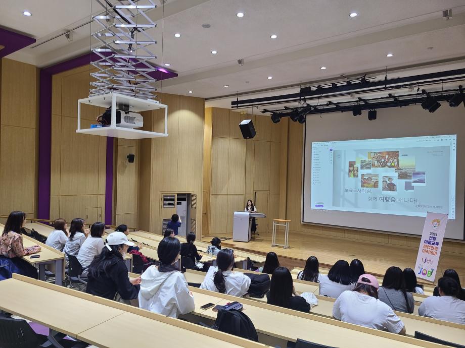 2024년 5월 30일 '보육교사의 삶, 함께 여행을 떠나다!' 라는 주제로 윤빛 어린이집 원감님의 특강을 진행하였습니다.
