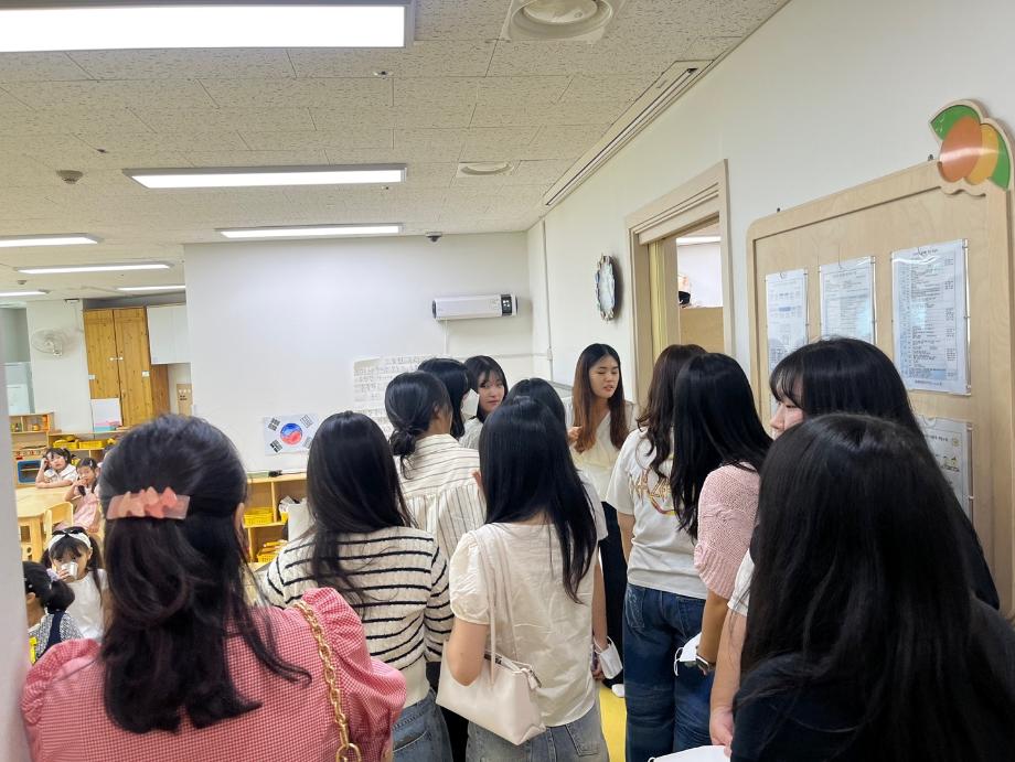 첫 번째 견학한 곳은 충남도청 어린이집입니다. 원장님과 선생님들의 안내를 받아 어린이집 내 여러 시설들과 각종 교구들에 대한 소개를 듣고, 궁금한 점들을 알아보는 시간을 가졌습니다. 친절히 맞아주신 충남도청 어린이집 모두 감사드립니다.