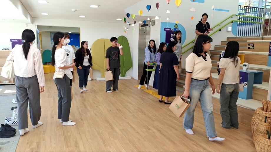 두 번째 견학한 곳은 충남 어린이 인성 학습원입니다. 충남도청 어린이들을 위한 놀이 지원, 그림책 도서관, 인성동, 야외 교실, 요리 교실 등 각종 다양한 시설을 직접 체험해보고, 경험할 수 있는 시간을 가졌습니다. 재학생들 모두 동심으로 돌아가 함께 참여할 수 있었습니다.