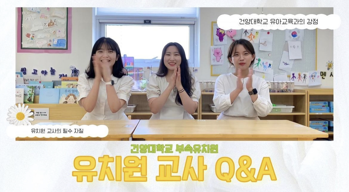 안녕하세요:) 이번 영상은 특별히 우리 건양대학교 유아교육과를 졸업해 현재 부속 유치원에서 n년차 현장 교사를 맡고 계신 자랑스러운 선배님들을 대상 으로 진행한 인터뷰 내용을 담아보았습니다! 바쁘신 와중에 후배들을 위해 귀한 시간 내주신 선배님들께 진심으로 감사드리며, 교육 현장에 계신 모든 선생님들을 저희 건양대 유교과에 서 응원합니다 * https://youtu.be/ESus05yCYZk (프로필 링크 참고) |