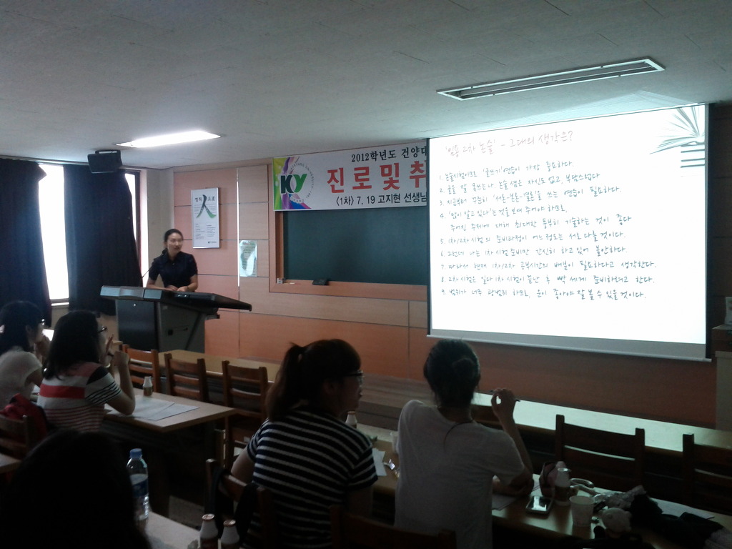 2012년 7월 19일(목) 14:30~17:00, 인문학관 407호는 2012년 제1차 진로 및 취업 멘토링 프로그램에 참여한 중등특수교육과 1~4학년 40여 명의 열기로 가득차 2개의 에어컨을 가동해도 식을 줄을 몰랐다.