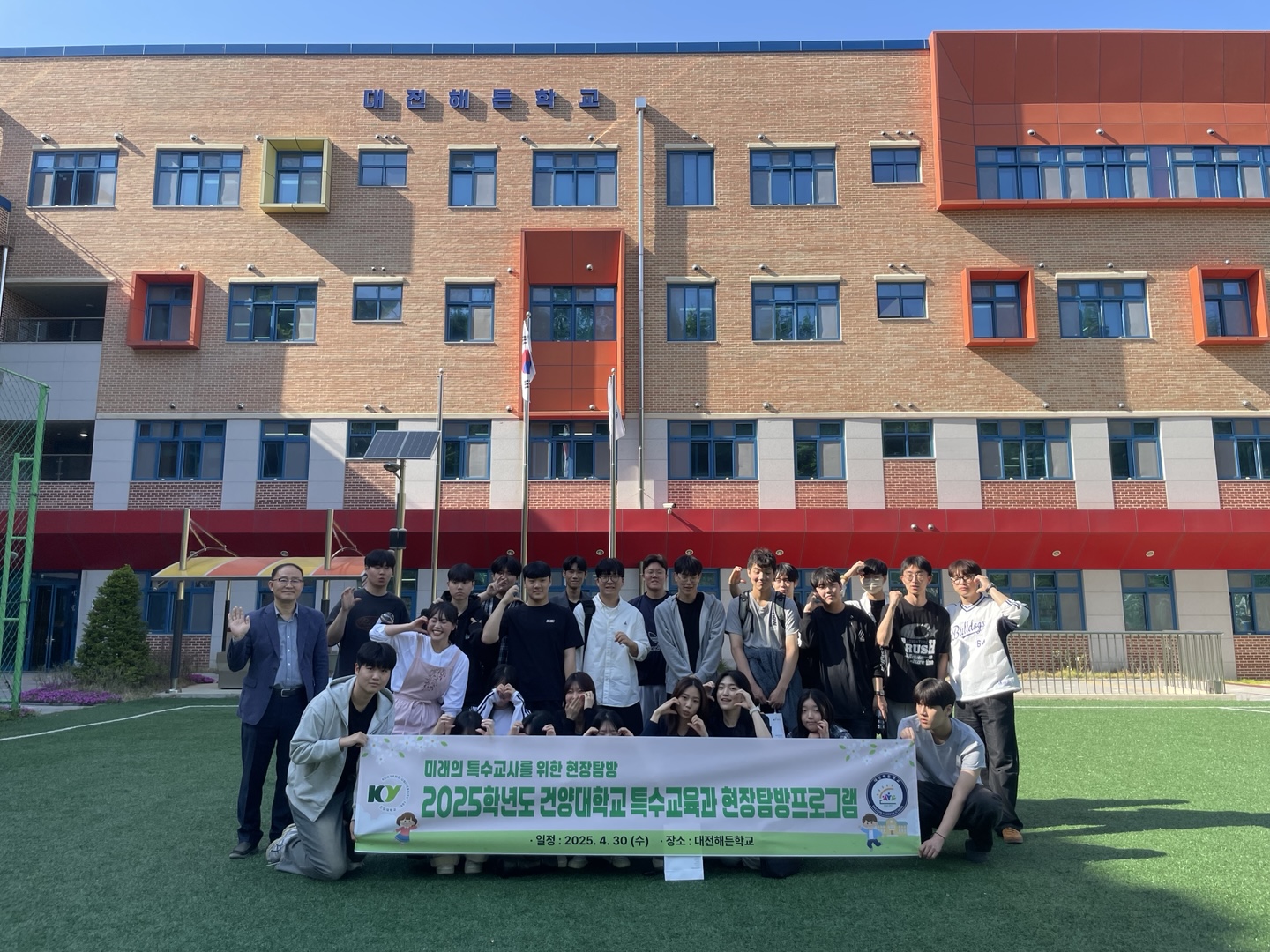 지난 4월 30일 건양대학교 특수교육과 25학번 신입생들과 편입생들이 2팀으로 나누어 특수교육현장을 방문했습니다. 1팀이 방문한 곳은 대전해든학교랍니다. 대전해든학교의 직업교육, 생활교육시설도 꼼꼼하게 살펴보고, 특수교육을 잘 하는 방법에 대해서도 어렴풋이나마 알 수 있게된 뜻 깊은 시간이었답니다. 자랑스러운 우리 학과 선배 선생님께서 학교 곳곳을 둘러보며 안내해주셨고, 교장선생님께서는 작은 부분까지 세심하게 설명해주셔서 왜 특수교육이 전문가의 영역인지도 알게되었어요. 특수교육하길 참 잘했다는 생각이 들었답니다. |