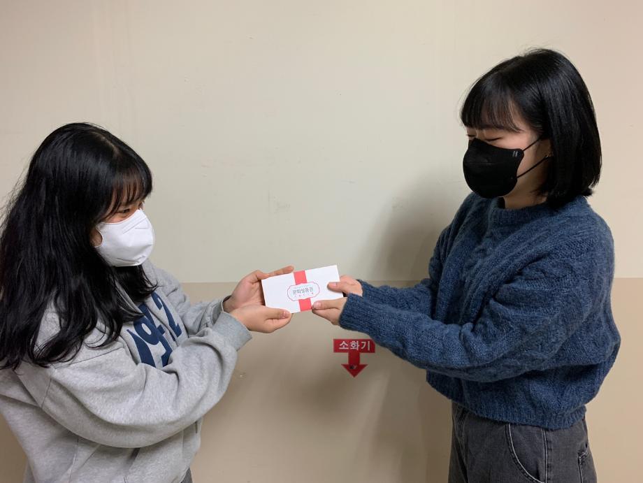코로나19로 인해 학생회의 여러 행사가 제대로 이루어지지 못하여 이월된 학생회비가 발생하여 이를 학생 복지로 환원하기 위해 재학생을 대상으로 새학기 교재 구입비를 지원하였습니다. 학생회에서는 지난 3월 15일, 재학생들에게 1인당 10,000원의 도서상품권을 지원하였습니다.