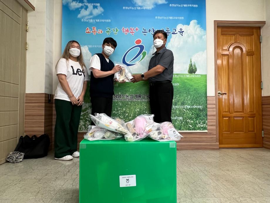우리 학과의 자랑거리 중 하나인 올해 새싹이캠프는 코로나 19 확산에 따른 조치로 학습자료를 논산계룡교육지원청에 전달하는 것으로 대신하게 되었다. 재학생들은 기말고사가 끝나자 마자 다시 학교에 모여 1달여 시간동안 대면 캠프를 준비하였지만 갑작스러운 코로나 19 확산에 따른 조치로 60여분의 공연과 학습 가이드를 영상으로 제작하였으며, 이에따른 학습자료 키트 꾸러미를 50인분을 제작하여 학생회장과 부회장이 2022년 8월 1일 논산계룡교육지원청의 정원만 교육장께 전달하였다. |