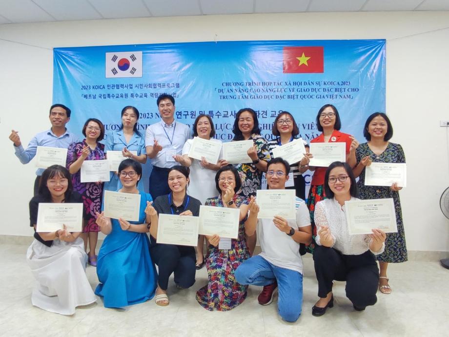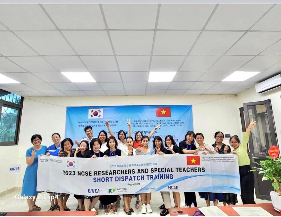 우리 학과의 교수님들은 2023년 8월 7일부터 11일까지 베트남 국립특수교육원(NCSE)을 대상으로 특수교육 역량 강화를 위한 장애학생 교수·학습 방법 온라인/오프라인 병행 연수를 실시하였다. 베트남 NCSE로부터 우리 대학은 지속적으로 장애학생을 위한 교수·학습 방법에 대한 한국의 경험 전수를 요청받아 오던 중 우리 학과의 기획에 의해 이번 연수를 진행하게 되었다. 이번 연수를 통해 우리 학과는 장애학생의 장애 영역별 교수·학습 방법과 수학, 과학, 미술, 일상생활활동 교과를 중심으로 한 교수·학습 방법, 그리고 교육과정 중심 평가의 이론과 실제 및 교육과정-수업-평가-기록 일체화의 이론과 실제를 중심으로 질 높은 강의가 제공하였다. 또한 베트남 NCSE가 개발 중인 베트남 국가수준 특수교육 컨텐츠에 대한 자문도 이루어 졌다. 이번 연수를 기획하고 총괄하여 진행하는 이필상 교수(초등특수교육과, 건양대학교 측 사업책임자)는 “베트남 국립특수교육원 연구원들은 마치 스폰지와 같이 우리나라 특수교육이 쌓아 온 다양한 경험을 흡수하고 있다.”고 하면서 “이 사업을 통해 건양대학교는 선진적인 우리나라 특수교육을 베트남에 이식해 준다는 생각을 하고 있으며, 베트남 측에서는 우리의 지속적인 지원을 강력하게 요청하고 있다.”고 하였다. 또한 “베트남 교육훈련부와 교육과학원에서도 우리 사업에 대한 강력한 기대와 지원을 나타내고 있기 때문에 큰 성과를 만들어 낼 수 있을 것으로 생각한다.”고 하면서 “내년부터의 지속·성장형의 계속사업에 대한 계획을 가지고 있다.”고 하였다.