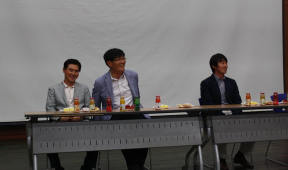학우들의 노래를 흐뭇한 모습으로 바라 보시는 재활퍼스널트레이닝학과 교수님들의 모습입니다^^