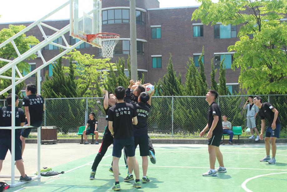 2015년 5월 9일 군사학과 체육대회가 열렸습니다. 창의융합캠퍼스와 연무캠퍼스의 군사학과 학생들이 페밀리 별로 농구, 풋살, 줄다리기를 실시하였습니다.