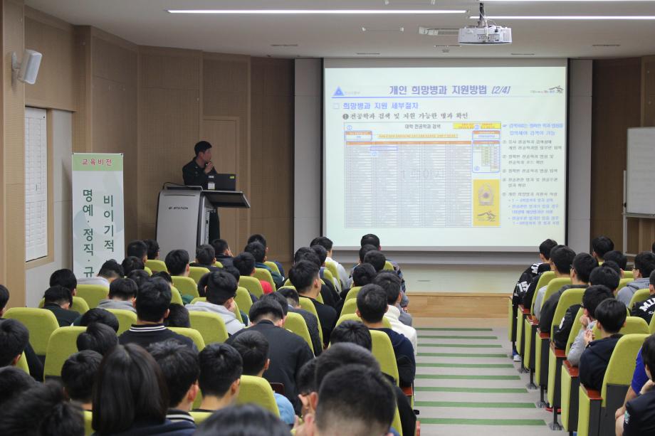 병과교육을 실시하였습니다. 자신이 가고싶은 병과에 대해 조금더 알수 있었습니다.