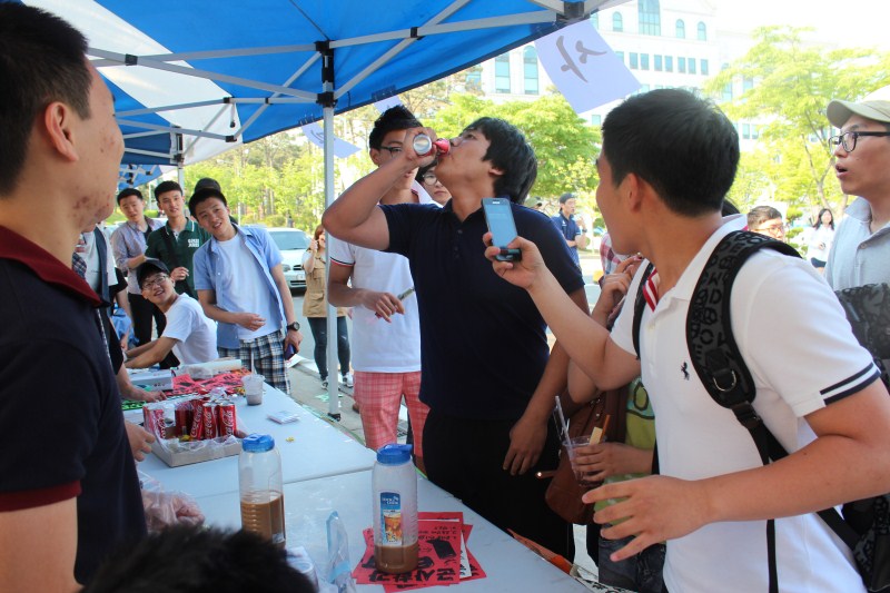 군사학과에서는 수제 소시지와 아이스티, 아이스커피 그리고 강제연인을 판매하였다.