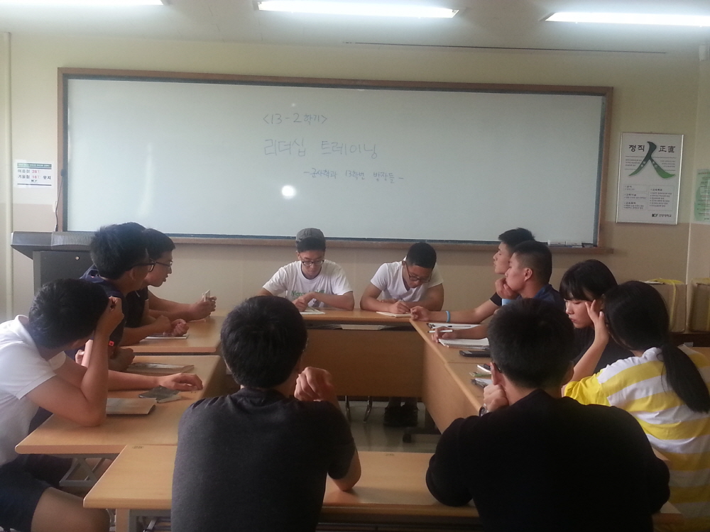 13학년도 2학기 개강을 하루 앞둔 9.1(일) 15:00 학년별 자치활동 간부 학생들이 2학기 면학 분위기 향상과 보람찬 대학생활을 설계하는 Leadership Training을 자체적으로 갖고 있다.