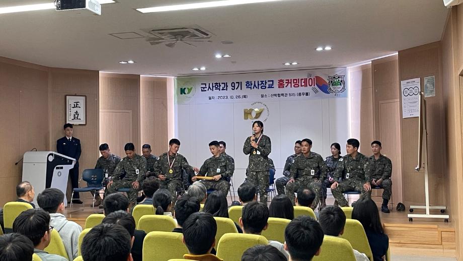 2023-10-26 군사학과 9기 학사장교 홈커밍데이가 있었습니다. 후배들에게 좋은 말씀해주신 선배님들 감사합니다 ^^ |