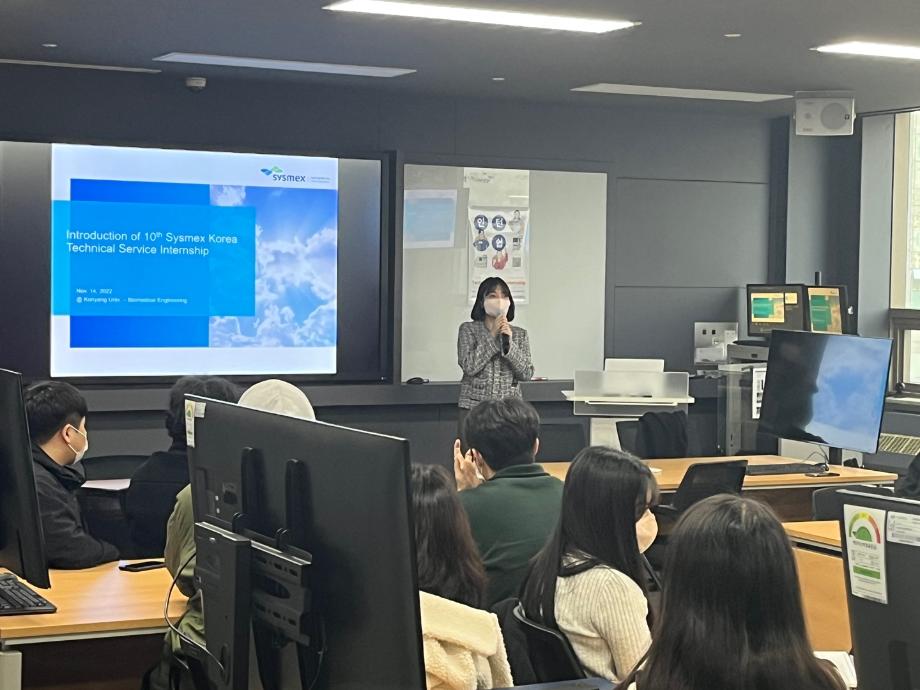 일본기업이며 검사진단 기기 세계 10위권인 Sysmex 코리아에서 우리과 학생을 위한 인턴/채용 설명회를 개최하였습니다. |