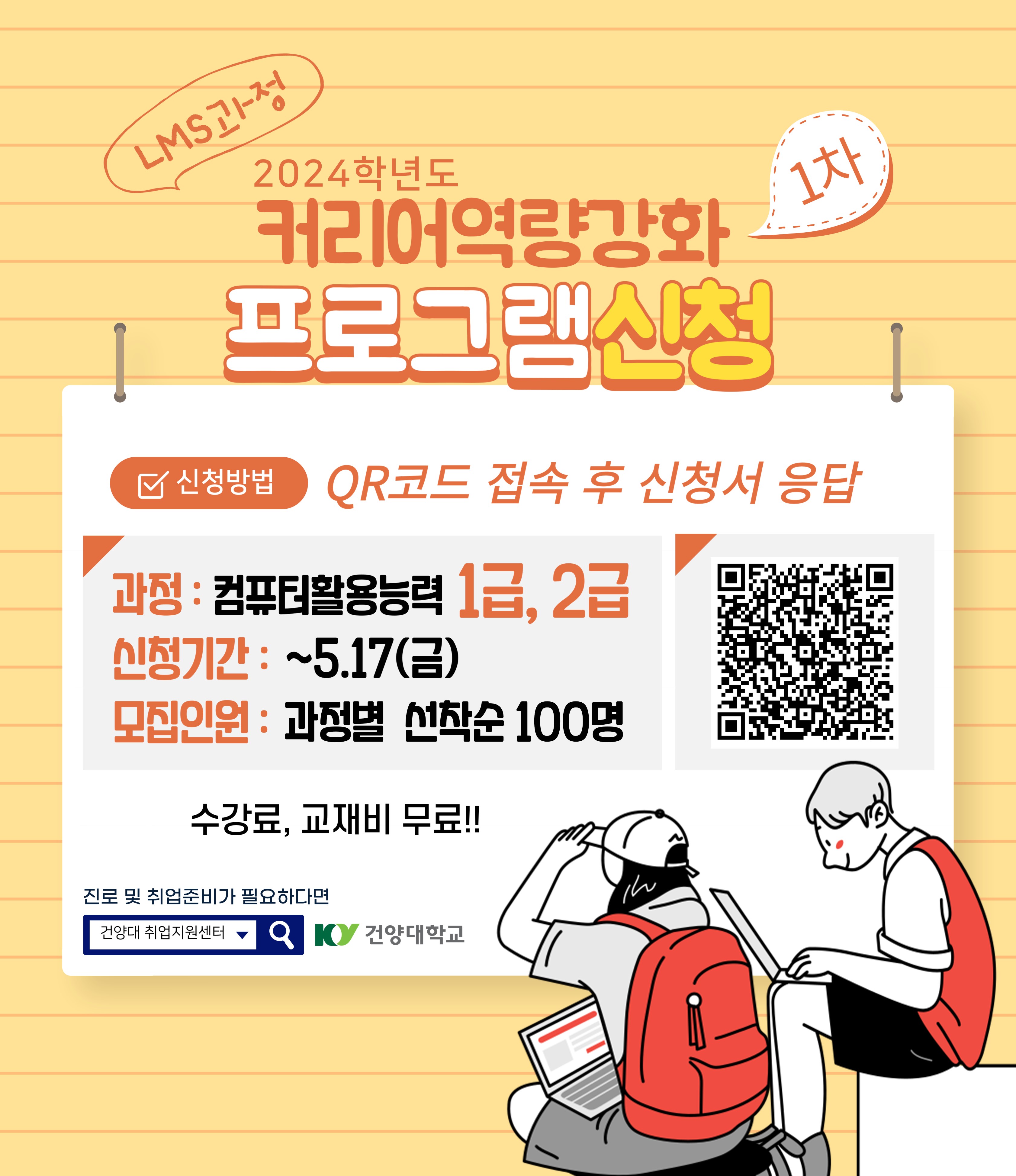 『 2024학년도 1차 커리어역량강화 프로그램 수요조사 안내 』글의 상세내용을 확인하는 표로 제목, 부서명, 등록일, 조회, 첨부, 내용으로 나뉘어 설명합니다.