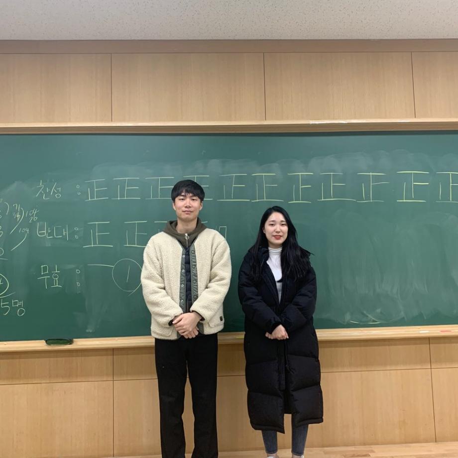 더불어 차기 학생회 ‘도화지’ 당선자(학회장 후보 ‘홍은표’ 학우, 부학회장 후보 ‘주희’ 학우)에게 축하의 박수를 보냅니다.