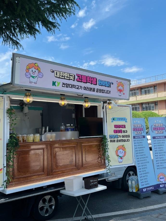 대전·논산·계룡 지역 고등학교를 대상으로 무료 음료차량을 보내 대학 및 학과 홍보를 하는 건양대 홍보 이벤트가 진행 중이다. 2학년 김OO학생이 이 곳 대전여자고등학교 출신으로, 이벤트 당일 모교를 방문하여 은사님을 찾아뵙고 병원경영학과를 홍보할 수 있는 뜻깊은 날이었다. |