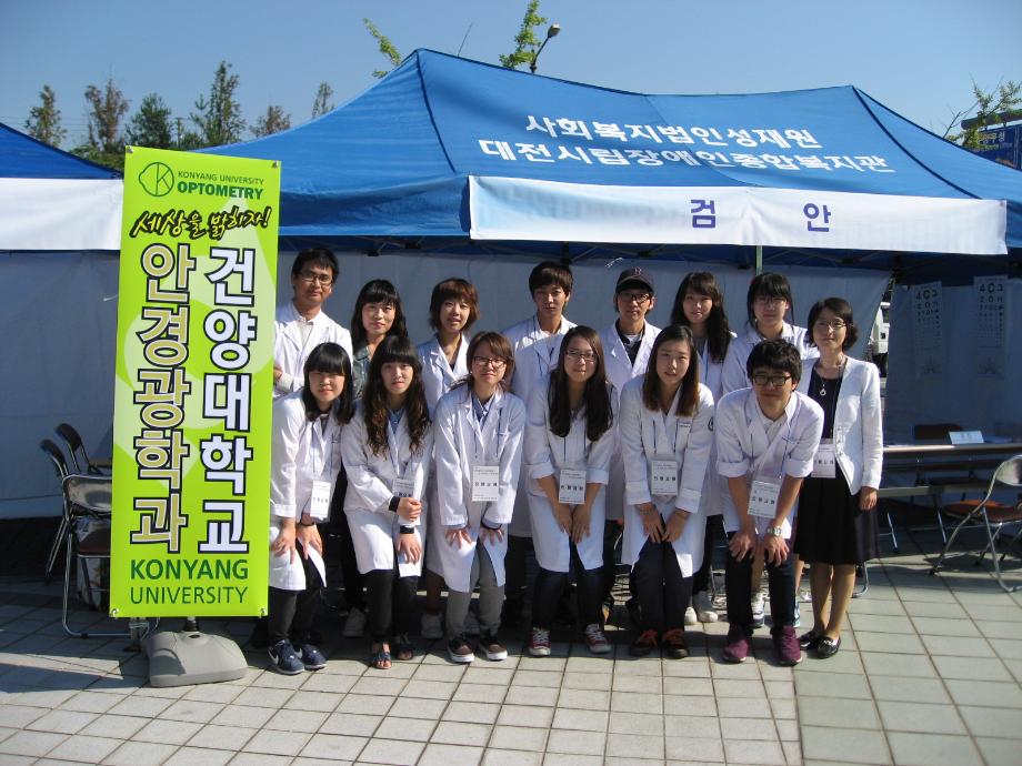 2011.09.24(토), `2011 여성장애인 취업박람회 검안봉사 & 찾아가는 이동복지관` 행사 에서 3학년 및 2학년 학생 13명이 검안봉사에 참여하였습니다. 문진, 장용안경검사, 타 각적굴절검사, 자각적굴절검사, 입체시검사, 암슬러검사, 색각검사 등을 실시하였고 참 가자들로부터 좋은 호응을 얻었습니다.