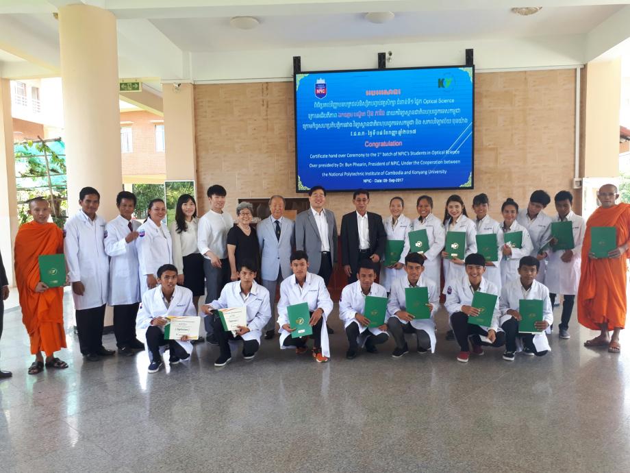 건양대학교 안경광학과는 캄보디아국립기술대학교(이하 NPIC)에서 캄보디아 최초로 안경사 자격증시험을 9월6일~7일까지 실시하였다. 총 응시자는 18명으로 16명이 시험에 합격하였다. 시험은 필기시험이 아닌 실기 시험으로만 굴절검사, 안경 조제분야로 나눠 실시하였다. 안경사 시험에 합격한 16명은 안경사 자격증과 안경사 가운 등을 받은 수여식도 함께 실행되었다.