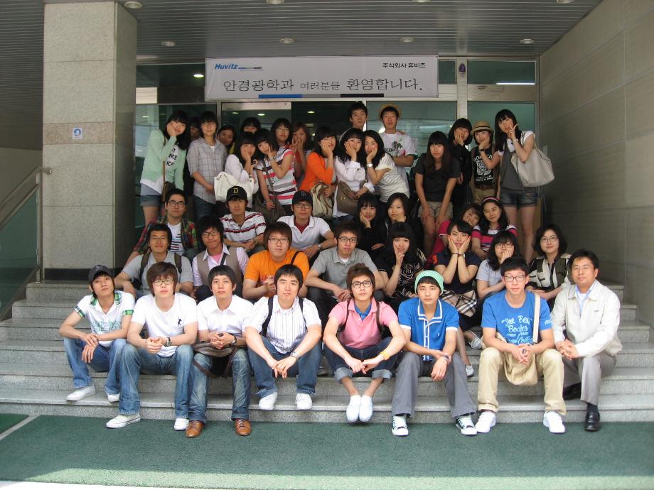 5월 29일 금요일에 3학년들과 김현정교수님이 경기도 군포시에 위치한 (주)휴비츠를 방문 하여 광학기기의 제조공정 및 광학적 원리에 대한 강연을 듣고, 식사를 한 후 시제품 견 학 및 작동원리에 대한 현장교육을 통하여 유용한 정보를 습득하였습니다.