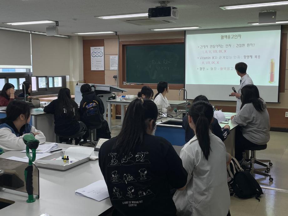 <논산여고 대상 진로체험 운영> ▶ 대상 : 임상병리학과 관심학생 20명 ▶ 담당 : 임상병리학과 백승근 교수님