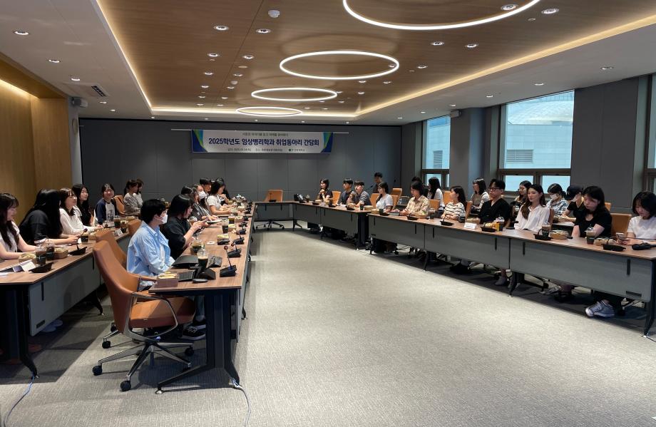 2025학년도 임상병리학과 취업동아리 간담회 -운영 동아리: 슬임생, 알맹이, 예화, 온랩, 취업연구소, 취준진담 지난 9월 4일(목) 12시, 죽헌정보관 5층 505호 대회의실에서 취업동아리 소속 학생 33명이 참석한 가운데 간담회를 개최하였습니다. |