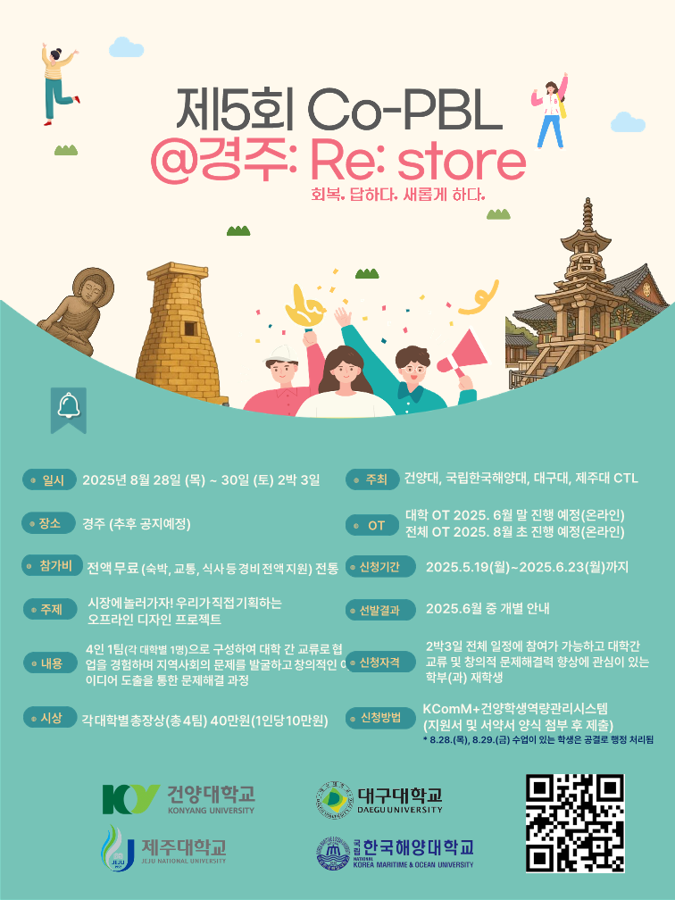 | 제목 | 제5회 권역 연합 CTL 공동 프로그램 CO-PBL@경주 참여 학생 모집 안내 | ||||
