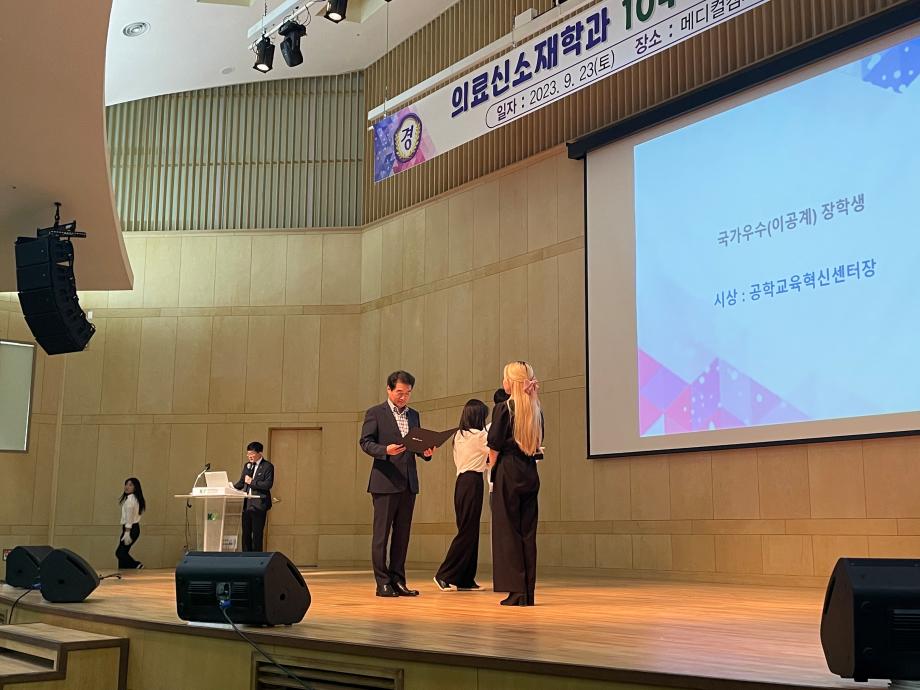 1. 일 시 : 2023. 9.23(토) 14:00~19:00 2. 장 소 : 죽헌정보관 리버럴아츠홀, 느리울초등학교 3. 참여학생 : 의료신소재학과 및 내빈 교원, 재학생 4. 행사일정