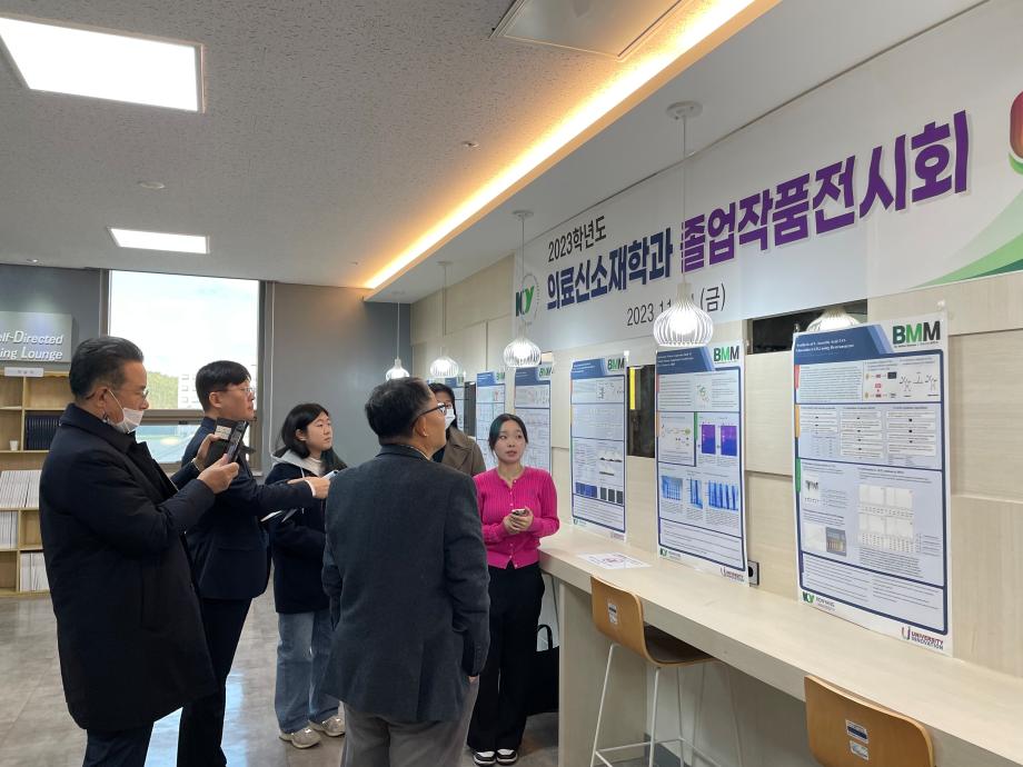 의료신소재학과 졸업논문 전시회 - 일자 : 2023.11.24(금) - 장소 : 죽헌정보관 10층 로비 |