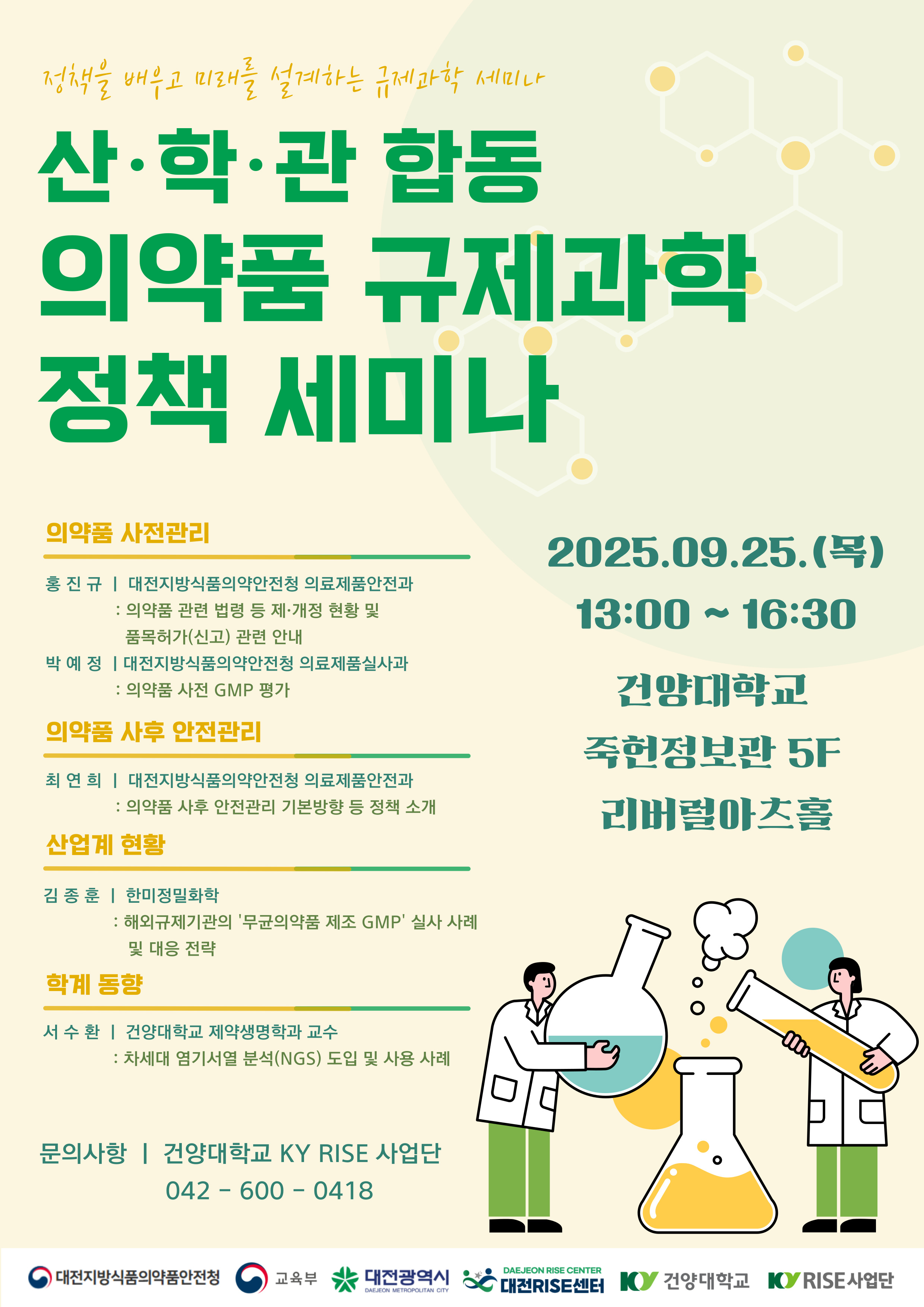 산·학·관 합동 의약품 규제과학 정책 세미나를 안내드립니다.