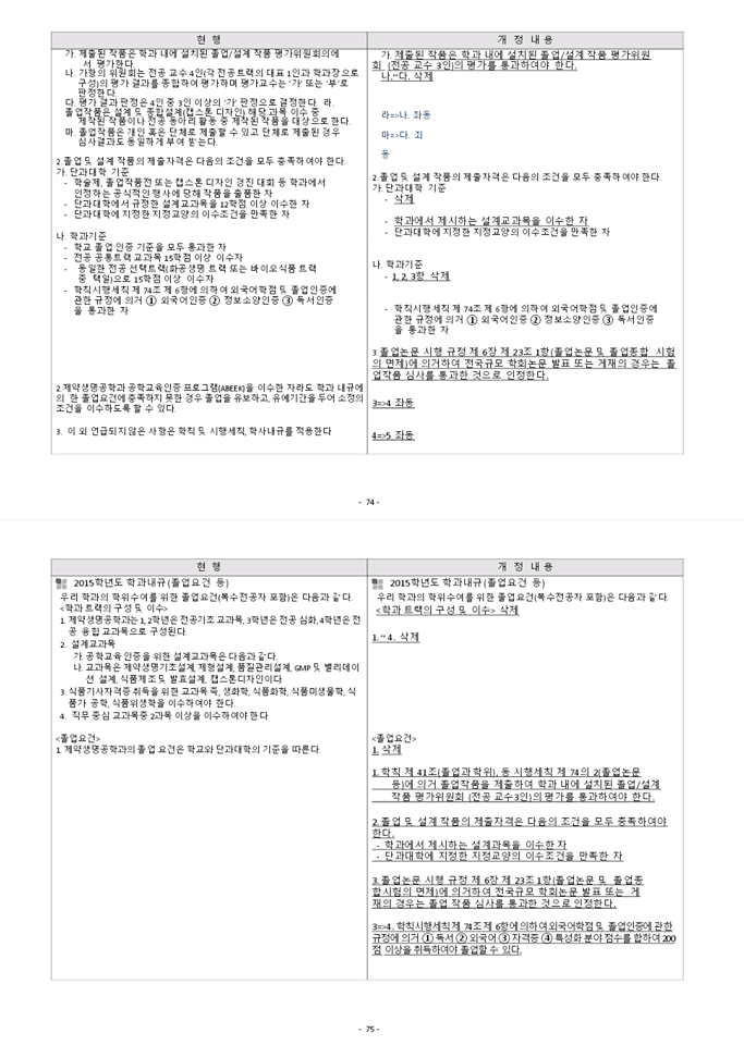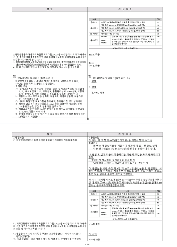 2018학년도 교육과정운영위원회 회의 결과에 따른 제약생명공학과 교육과정 및 학과내규 개정사항