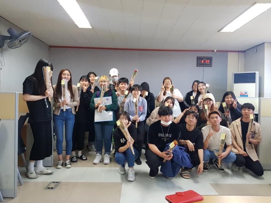 5월 20일 시각디자인학과에서 신입생을 위한 성년의 날 행사가 진행되었습니다. 각 학년의 임원들이 모여 장미와 케이크 등의 선물을 준비한 깜짝 파티를 진행하였는데요.