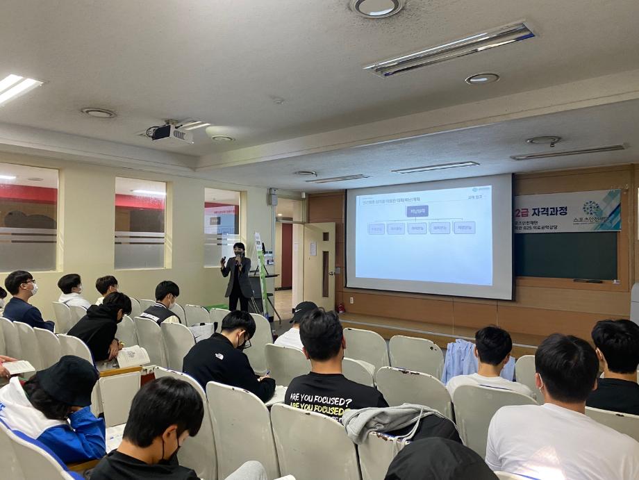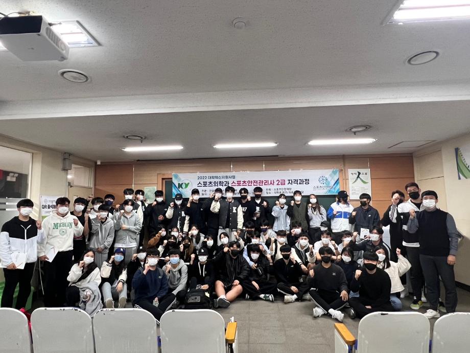 2022년 대학혁신지원사업의 일환으로 스포츠안전관리사 2급 자격과정을 학교의 예산 지원을 받아 진행하였습니다.