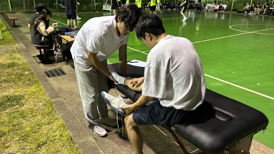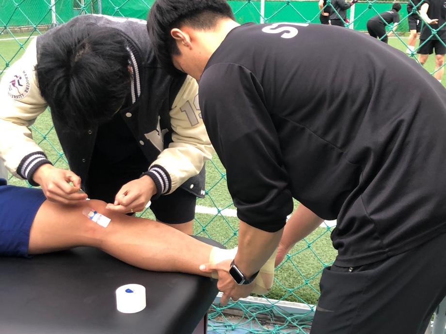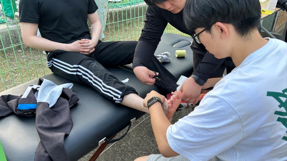 23.05.17~23.05. 과 대항전 기간 동안 스포츠의학과에서 의무지원을 나갔습니다. 각 종목 당 출전한 선수들이 경기 도중 부딪치거나 경기를 진행하지 못하는 순간에 들어가 부상의 정도를 확인하고 응급처치를 했습니다. 심한 부상의 정도는 아니었지만 직접 경험해보며 실무에 나간 거와 같은 경험을 했습니다. 의무지원에 지원하고 경기마다 지원을 나가준 학우분들 고생 많으셨습니다 ‼️ |