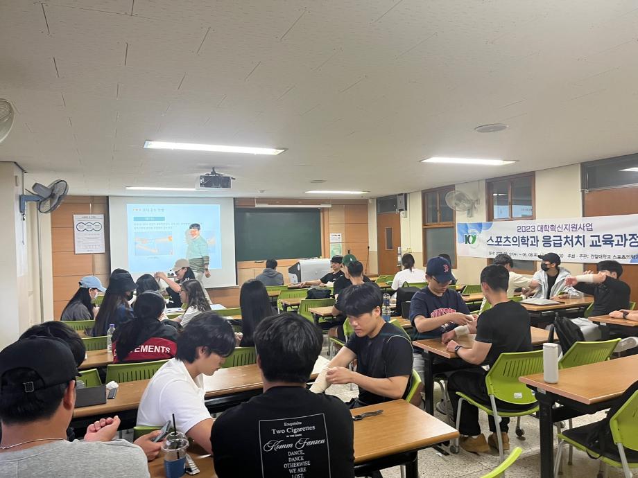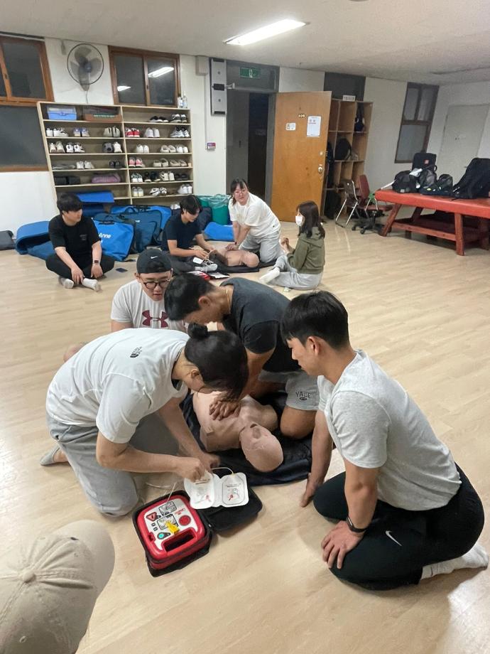 23년 대학혁신지원사업의 일환으로 응급처치 자격과정을 학교의 예산 지원을 받아 진행하였습니다.
