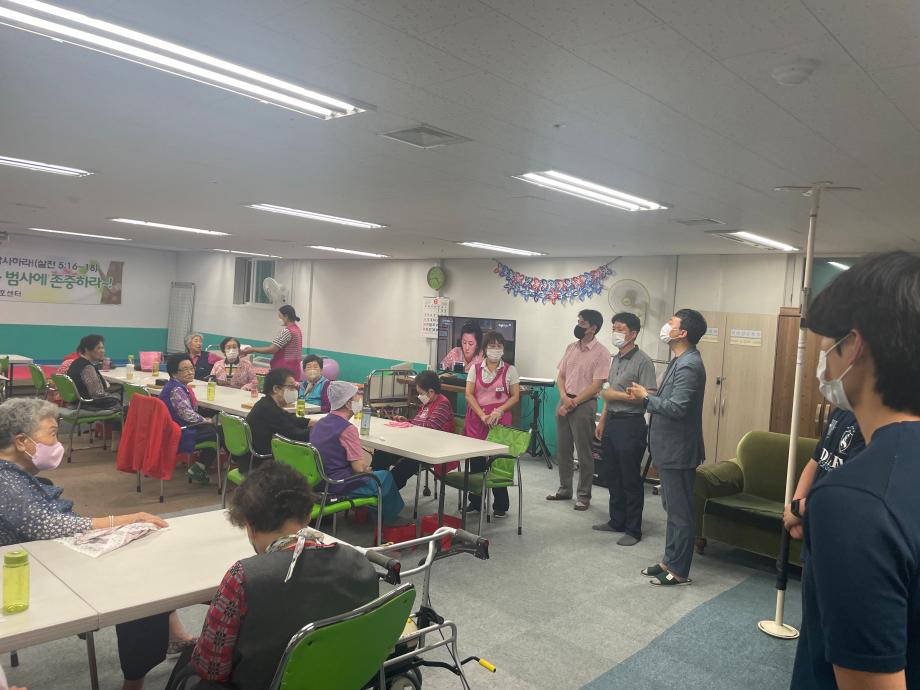 지역사회 어르신들에게 운동프로그램을 제공하는 활동으로 학교 인근 요양원에 방문하여 기관을 둘러보고 운동프로그램을 제공하였습니다.