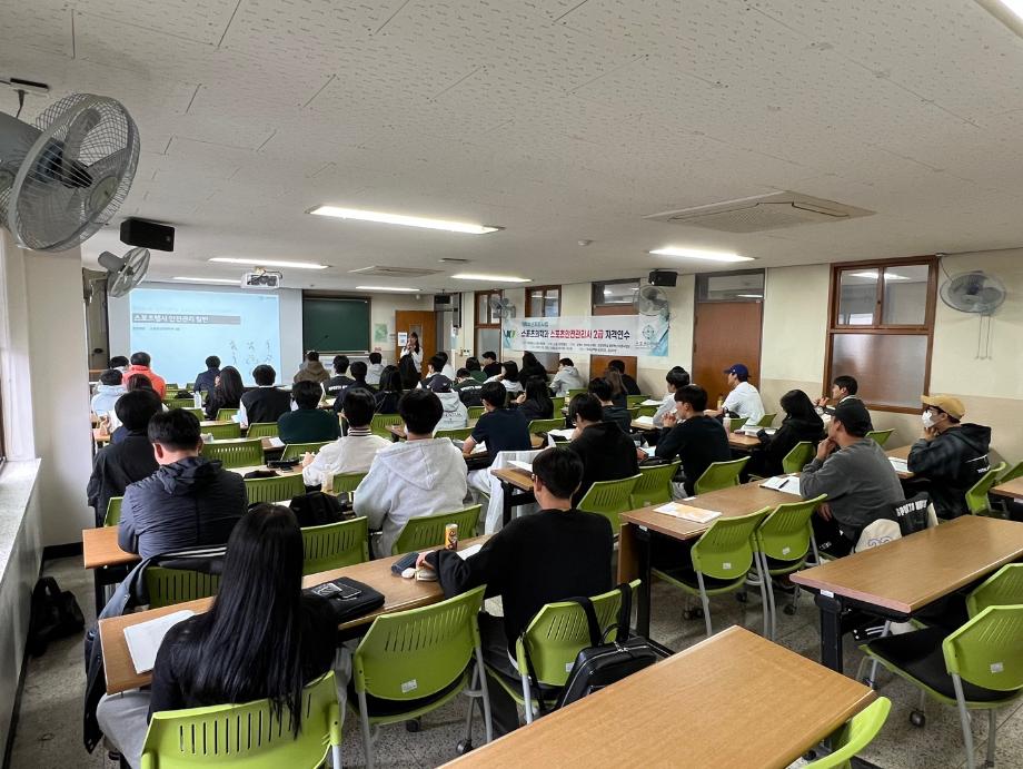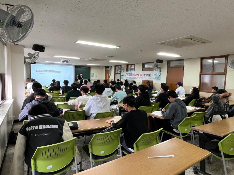 2023년 스포츠안전관리사 2급 자격과정을 학교의 대학혁신지원사업의 예산 지원을 받아 진행하였습니다.