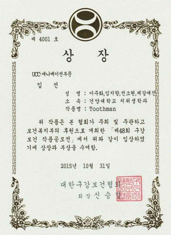 UCC 애니메이션 부문에서 입선을 하였습니다. 축하드립니다^^.
