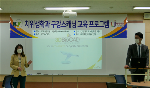 2021년 5월 25일(화) 건양대학교 치위생학과에서는 대학혁신지원사업단이 주최하고 3DBioCAD가 주관하는 ‘구강스캐닝 교육’을 실시하였다. 이 프로그램은 구강스캐너 원리 및 소개, 스캔 실습, TRIOS4 구강스캐너 핸즈온 등의 내용으로 치과진료실에서 치과위생사가 숙지해야 할 기본적인 내용을 다루었다. 이 날 교육에는 오전 22명, 오후 22명의 재학생이 참여하여 이론과 실습수업 후 이수증을 취득하였다.