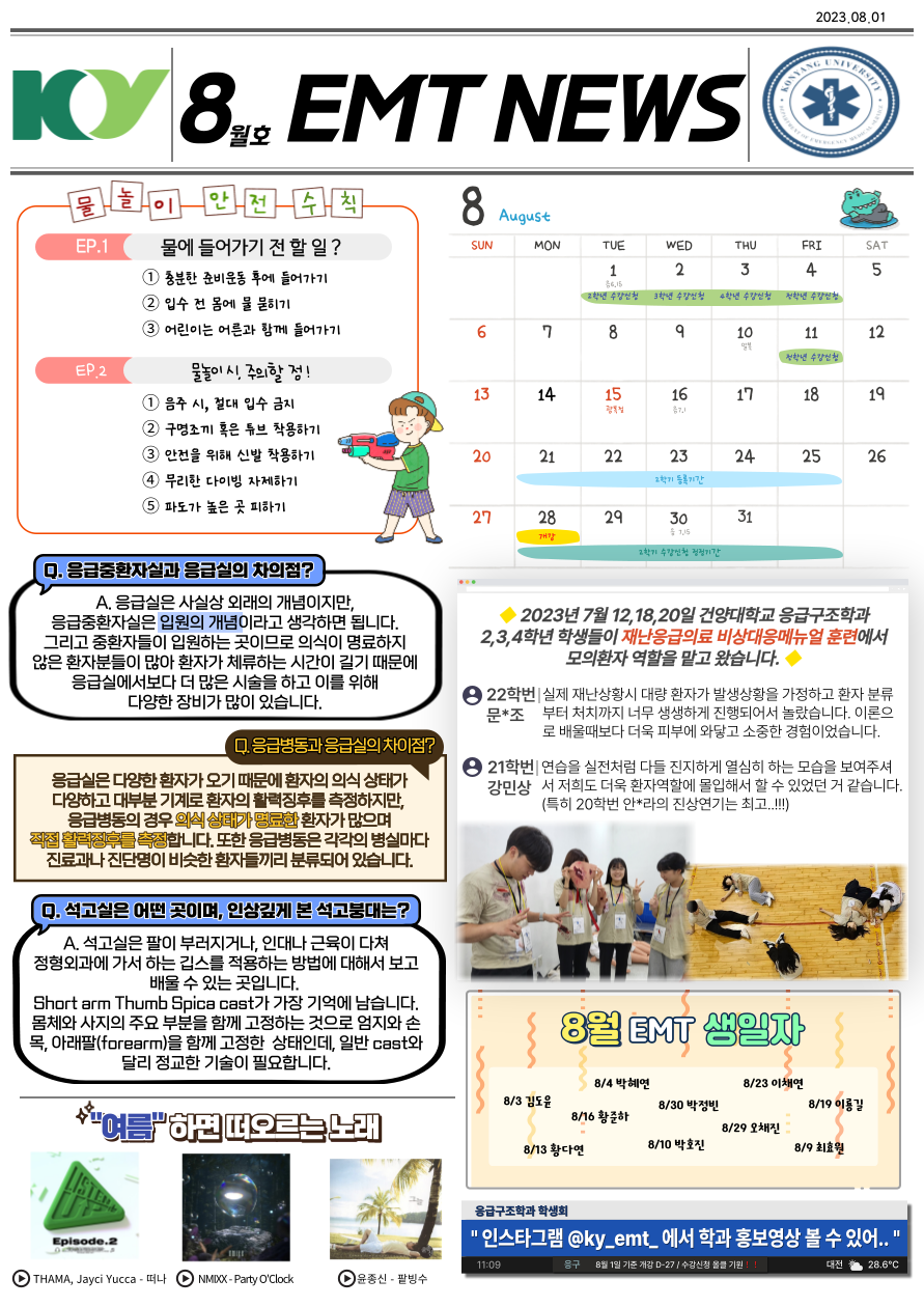 『 2023년도 8월 월간지 』글의 상세내용을 확인하는 표로 제목, 부서명, 등록일, 조회, 첨부, 내용으로 나뉘어 설명합니다.