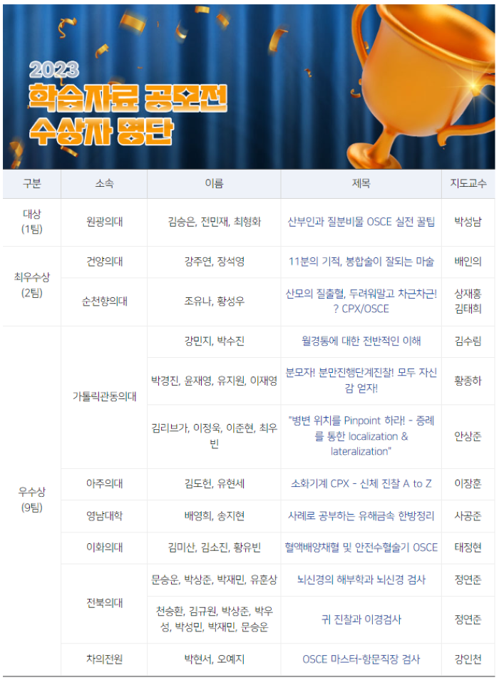 [관련소식 보기] https://www.mededu.or.kr/winner2023.asp |