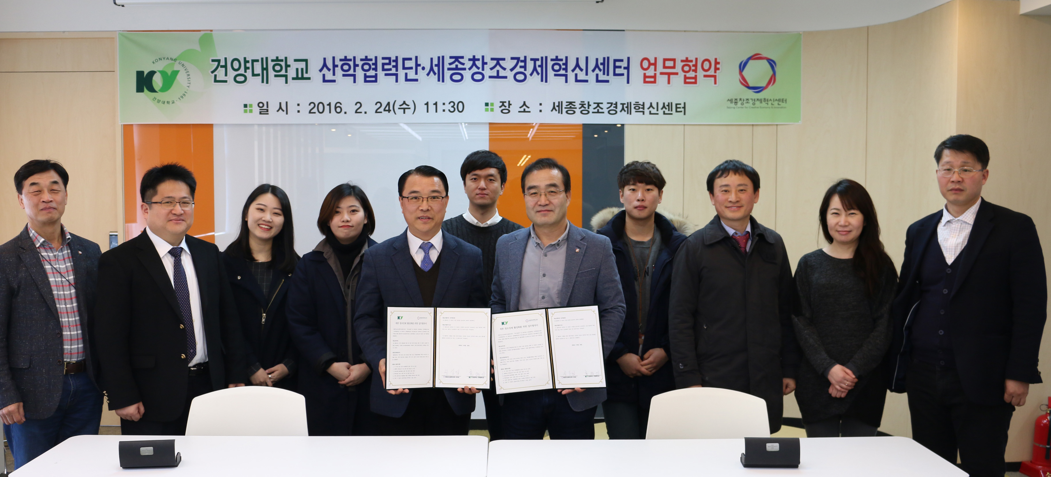 건양대학교(총장 김희수) 산학협력단과 세종 창조경제혁신센터가 24일 세종창조경제혁신센터 내에서 지역경제 활성화를 위한 업무협약을 체결했다. 이날 행사에는 홍영기 건양대 산학협력단장, 최길성 창조경제혁신센터장이 양 기관을 대표해 서명하였다. 창업동아리 학생 4명도 협약식에 같이 참여하여 앞으로 실질적인 사업교류가 될 수 있도록 하였다. 양 기관은 지역 창의 인재양성을 위한 교육, ICT/IOT 분야 학생 창업동아리 발굴, 창업활성화를 위한 아이디어 사업화 추진, 지역 창의기술 사업화, 지역 인적·물적 인프라 연계시스템 구축하여 협업하게 된다. 창업동아리 학생 4명도 협약식에 같이 참여하여 실질적인 교류가 될 수 있도록 여러 가지 아이디어를 제시했다.