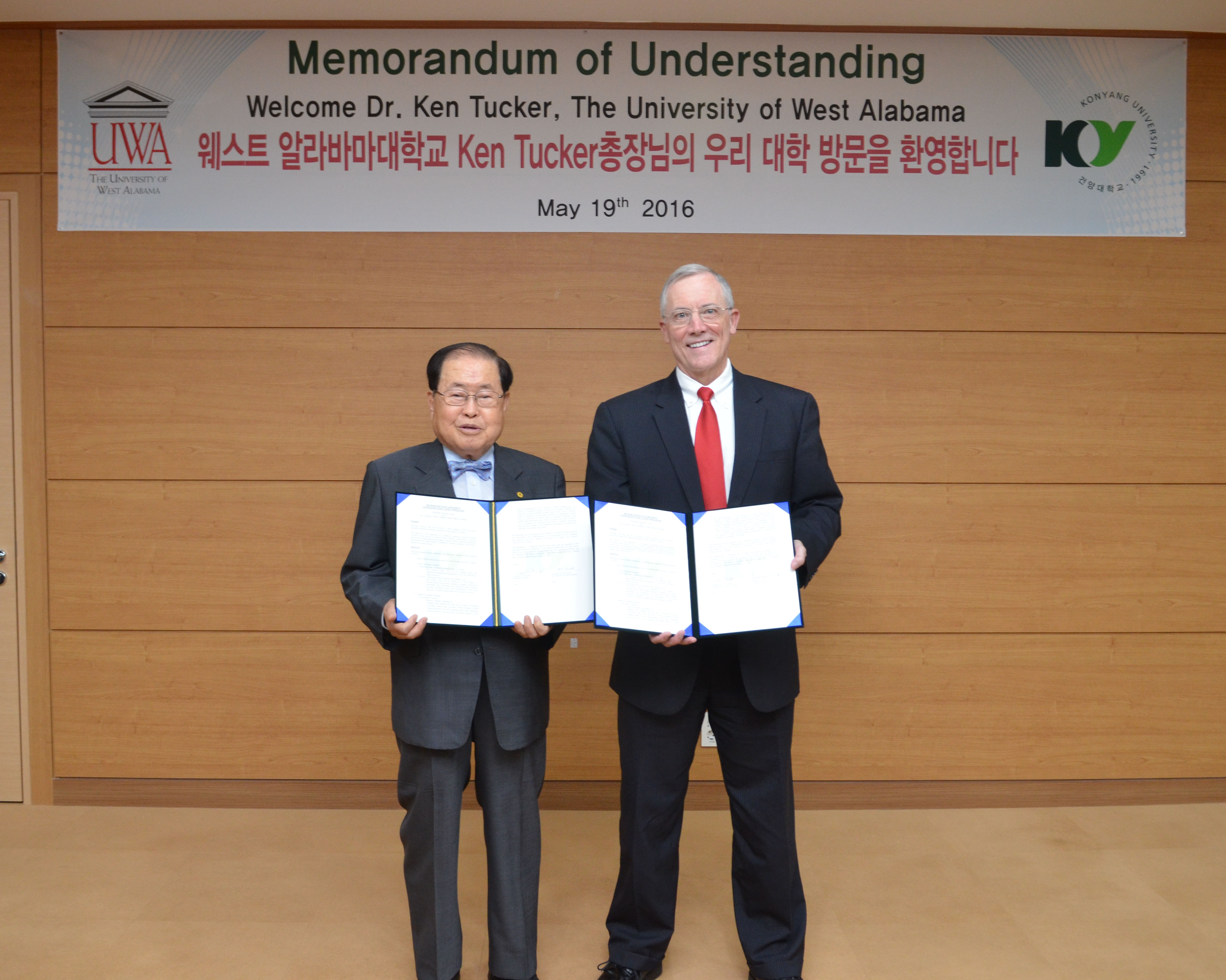 왼쪽부터 김희수 건양대 총장, 켄 터커 알라바마 주립대학 총장.jpg