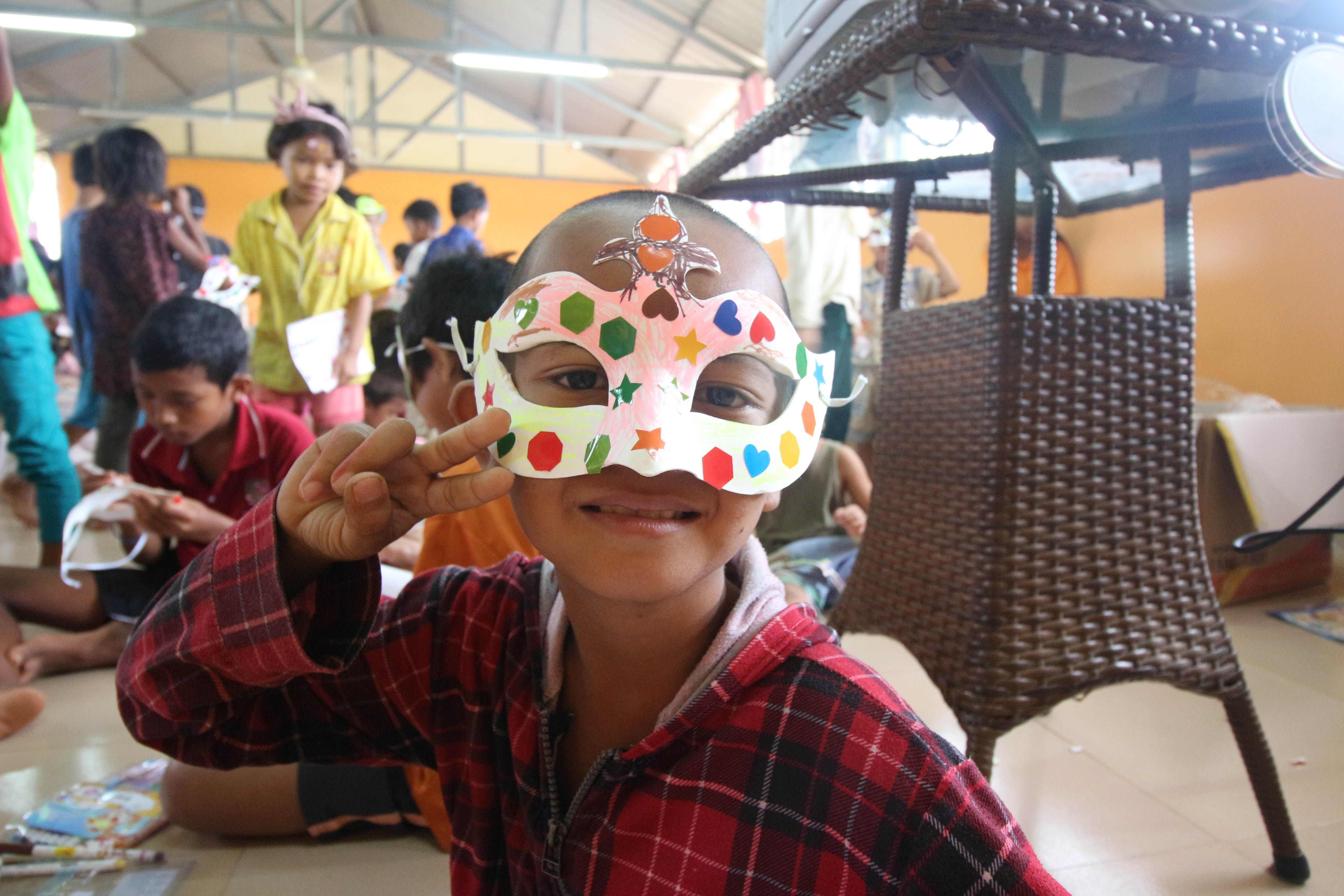 건양대 학생들과 함께 만든 가면을 쓴 캄보디아 어린이.jpg