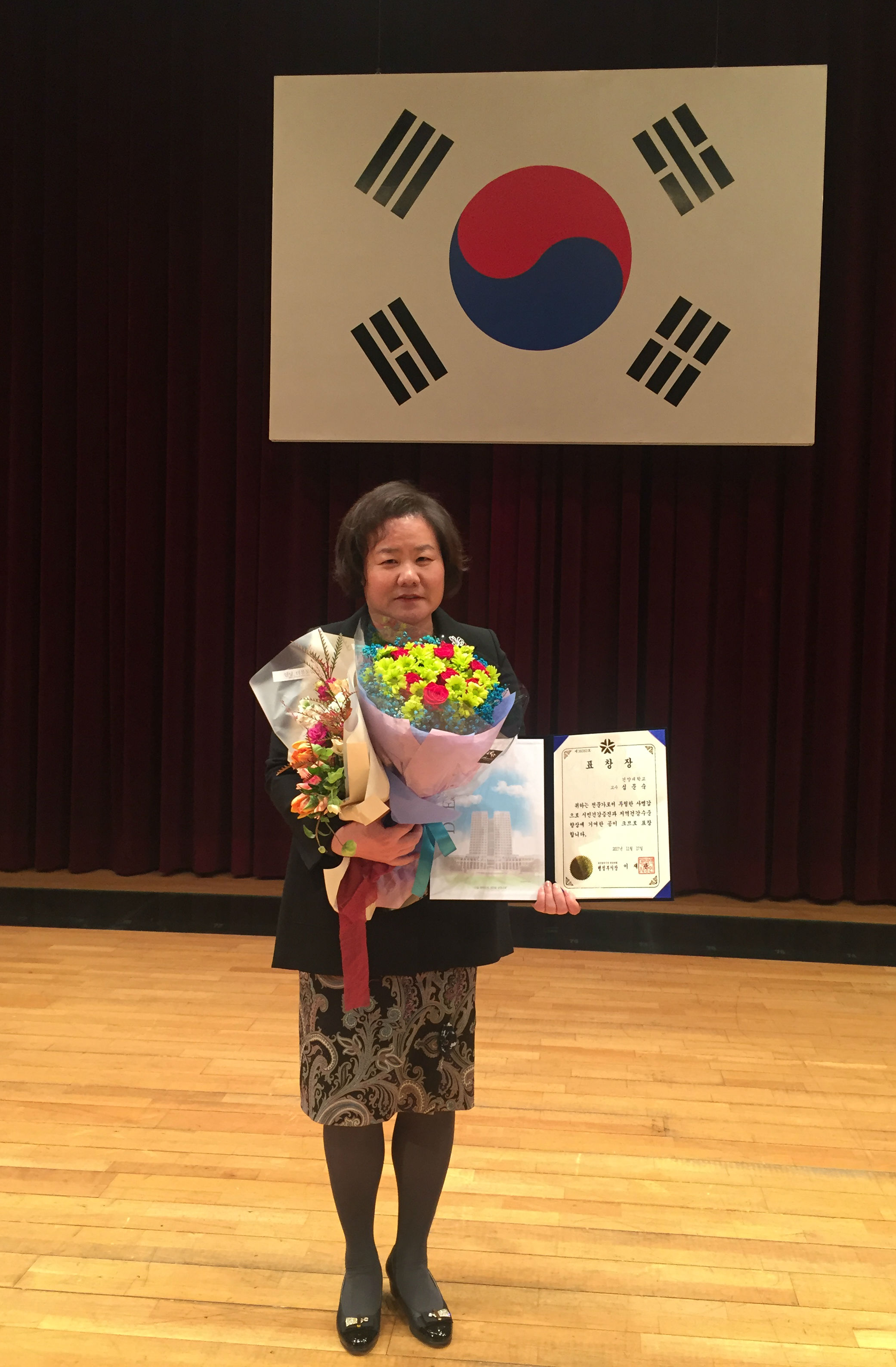 건양대학교(총장 정연주) 간호대학 심문숙 교수가 17일 오후 대전시청 대강당에서 보건․간호사업 유공자로 선정돼 대전광역시장상을 수상했다.