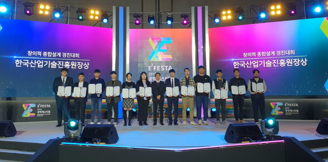 건양대(총장 이원묵) 공학교육혁신센터는 지난 8일부터 9일까지 산업통상자원부 주최로 경기도 일산 KINTEX에서 열린 「2018 공학페스티벌(E² Festa 2018)」에서 우수 공학교육혁신센터상(산업통상자원부장관 표창)과 올해의 대학 대상, 창의적 종합설계 경진대회 우수상(한국산업기술진흥원장상), 학생포트폴리오 경진대회 은상, 동상 등을 수상하는 쾌거를 이뤘다.