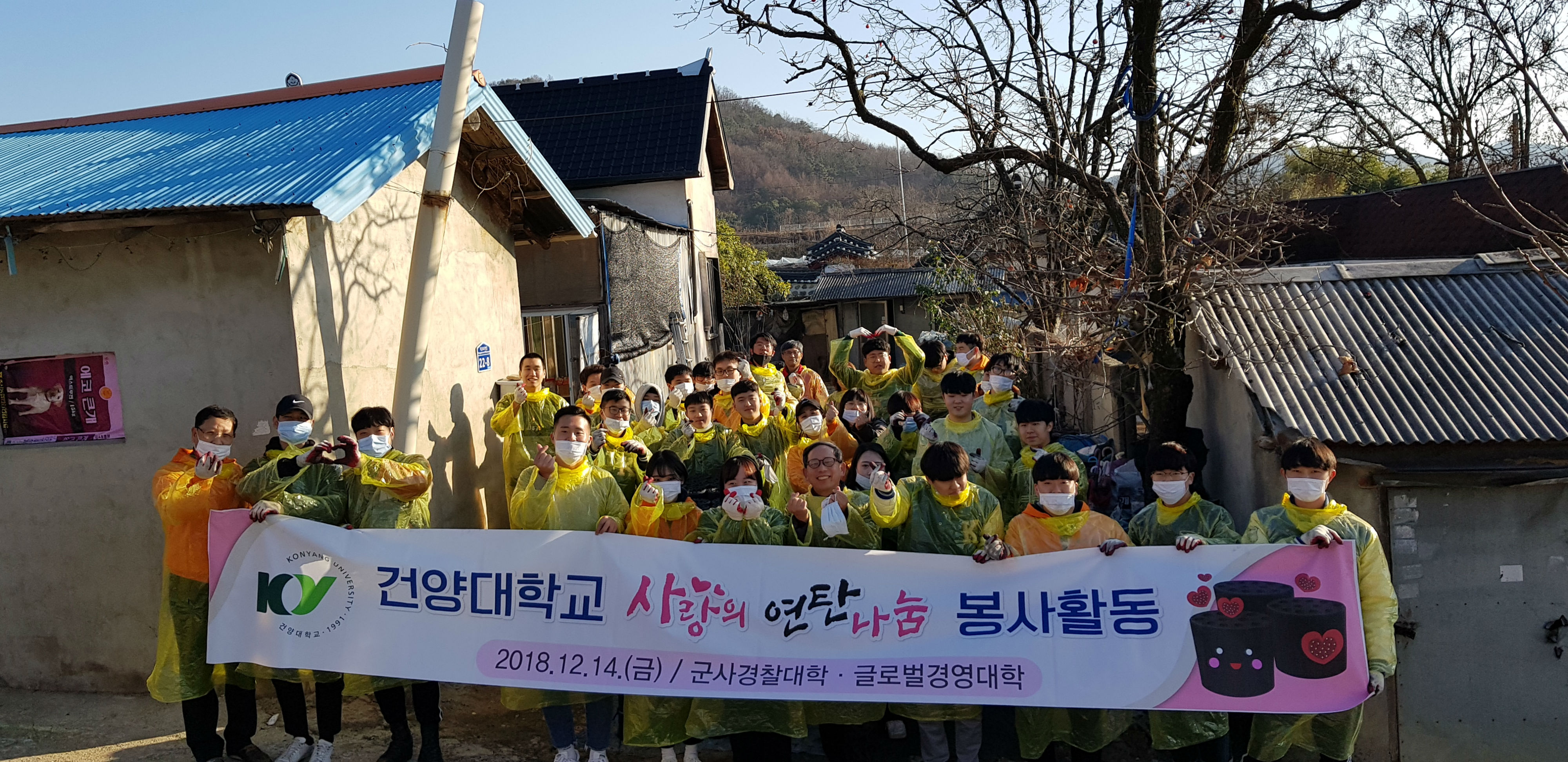 건양대학교(총장 이원묵) 군사경찰대학(학장 이세영)과 글로벌경영대학(학장 이영환) 교직원과 학생들 40여명은 14일 대학 인근의 어려운 이웃을 찾아 연탄 나누기 봉사를 통해 뜨거운 사랑을 실천하는 뜻깊은 행사를 가졌다.