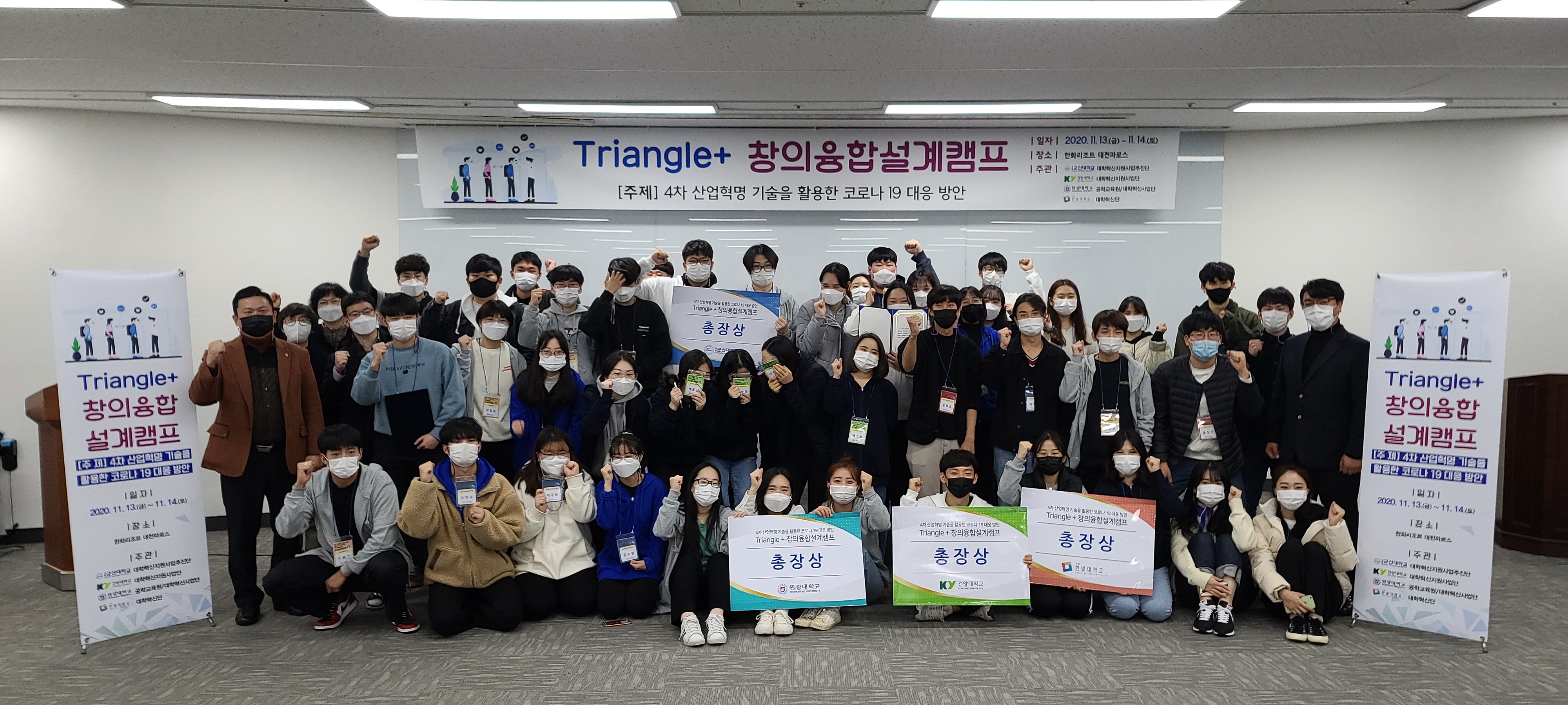 건양대, 트라이앵글 창의융합설계캠프 진행건양대학교 대학혁신지원사업단은 최근 한화리조트 대천파로스에서 '2020 Triangle+ 창의융합설계캠프'를 운영했다고 17일 밝혔다. 이번 캠프는 대전, 충남, 전북권 지역대학 간 상생 협력체계 구축과 우수프로그램 공유 기회를 확대하고자 마련됐다. 이는 지난 2017년부터 진행했으며 올해 건양대, 군산대, 원광대, 한밭대 등 4개 대학·재학생 40여 명이 참가했다. 참가자들은 '4차 산업혁명 기술을 활용한 코로나19 대응 방안'을 주제로 아이디어를 기획, 설계해 제작·발표하는 시간을 가졌다. 특히 기획에 앞서 △4차 산업 기술을 기반으로 한 코로나 방역체계 기술 소개 △창의적 아이디어 발상 기법 및 Design Thinking 프로세스 이해 등을 주제로 외부 전문가의 특강과 멘토링을 받았다. 참가자들이 발표한 결과물은 심사를 거쳐 대상 4개 팀을 선정, 각 대학 총장상을 수여했다. 건양대 총장상은 'RFID를 활용한 출입카운팅 기술'을 기획한 '오조오억'팀(건양대 의료공간디자인학과 이수민, 건양대 재난안전소방학과 이수미, 군산대 소프트웨어융합공학과 정민수, 원광대 전기공학과 장재혁, 한밭대 전자공학과 이한나)이 수상했다. 군산대 총장상은 '개찰구 체온 측정기'를 고안한 '칠면조'팀(건양대 의료공간디자인학과 정채원, 군산대 소프트웨어융합공학과 조연수, 원광대 행정학과 천동욱, 원광대 전자공학과 최지은, 한밭대 신소재공학과 조이현)이 받았다. 원광대 총장상은 '캡슐형 손 소독제'를 기획한 '청일점'팀(건양대 의료공간디자인학과 송가람, 군산대 소프트웨어융합공학과 김수영, 원광대 전자공학과 김현성, 한밭대 산업디자인학과 김채아, 한밭대 중국어학과 문혜지)이 차지했다. 한밭대 총장상은 '화학물 결합을 이용한 발열 소독제'를 고안한 '코로나잘가삼'팀(건양대 글로벌의료뷰티학과 안정아, 군산대 수학과 소범석, 원광대 컴퓨터소프트웨어공학과 윤동규, 원광대 경찰행정학과 홍정우, 한밭대 산업경영공학과 변서영)에게 돌아갔다. 최은규 건양대 대학혁신지원사업단장은 "이번 캠프와 같이 학생 수요에 기반한 다양한 프로그램이 운영되고, 프로그램과 관련된 성과가 교내외로 확산되도록 지속적으로 노력할 것"이라고 말했다. |
