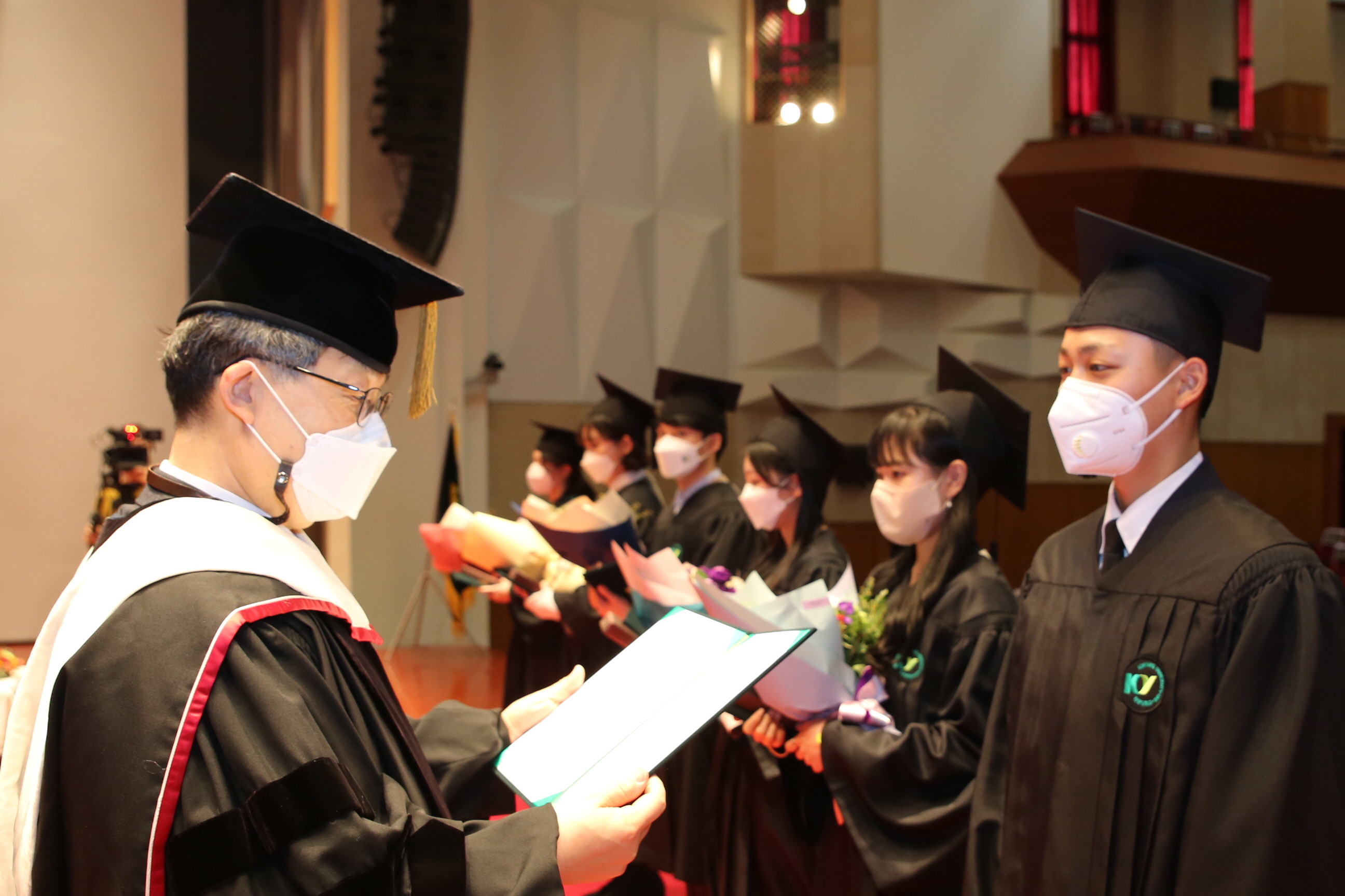 올해는 방역기준에 따라 참석인원을 299명 미만으로 제한한 가운데 사전 방역패스 기준을 통과한 학생을 대상으로 발열확인 및 QR코드 전자출입명부를 작성하는 방식으로 코로나 상황 이후 첫 대면 학위수여식을 개최하게 됐다.