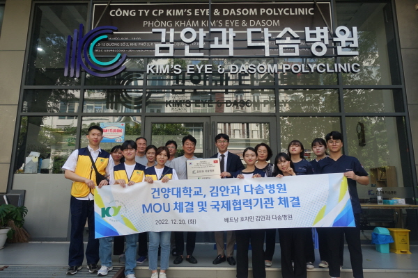 건양대학교(총장 김용하) 국제교류원(원장 서동권)은 20일 베트남 현지 고등교육기관과의 네트워크 형성 및 우수한 외국인 유학생 유치를 위해 호치민에 있는 김안과 다솜병원을 건양 해외 국제교류협력기관으로 선정하는 협약식을 가졌다.